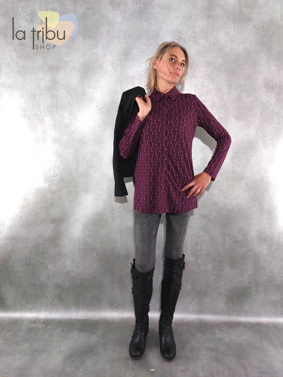 Polyester recyclé 50% – Polyester 46% – Spandex 4%. Lavable en machine à 30 degrés.
