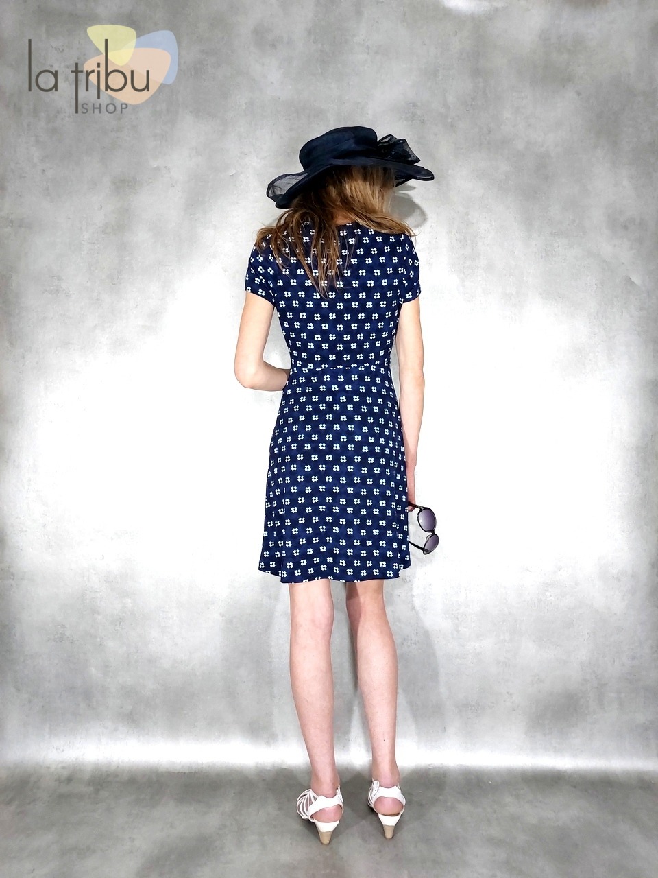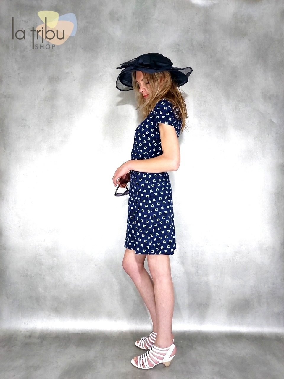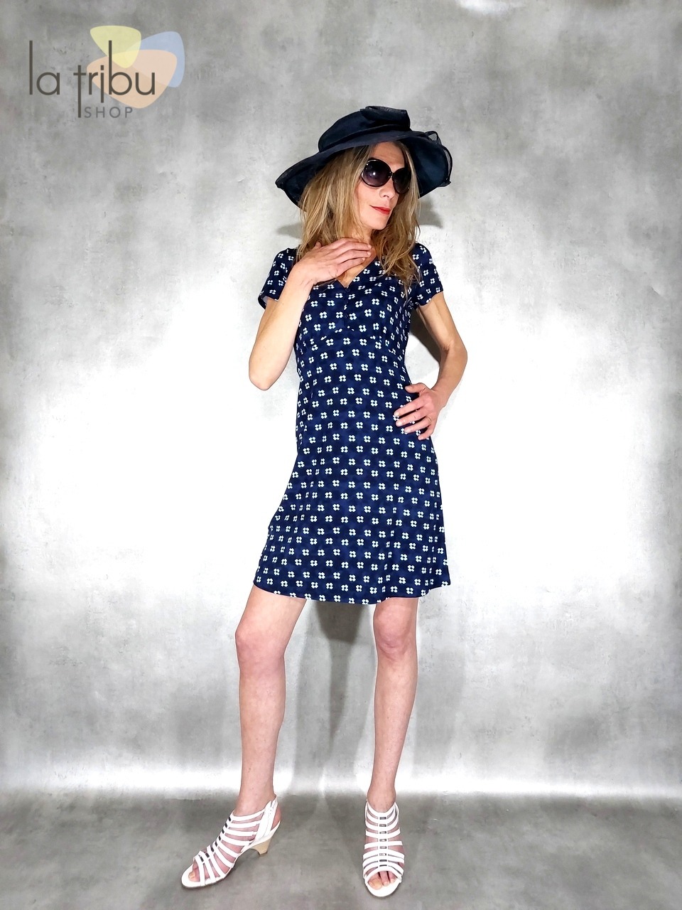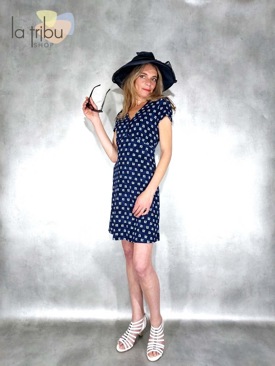 Petite boutonnière sous le col en V, au tombé aussi fluide et distingué que l’imprimé proposé, on adore !